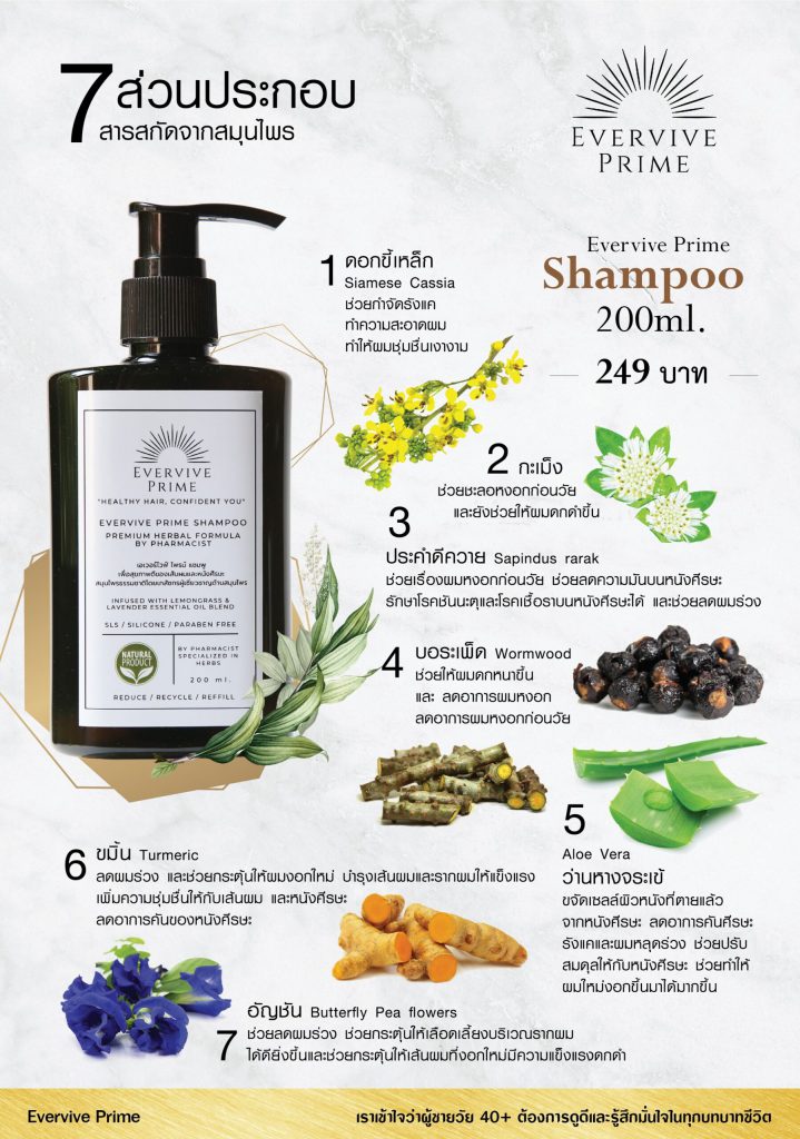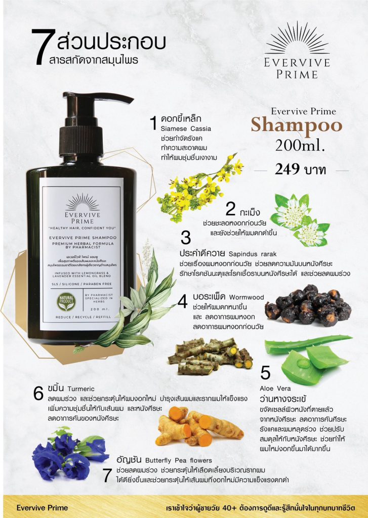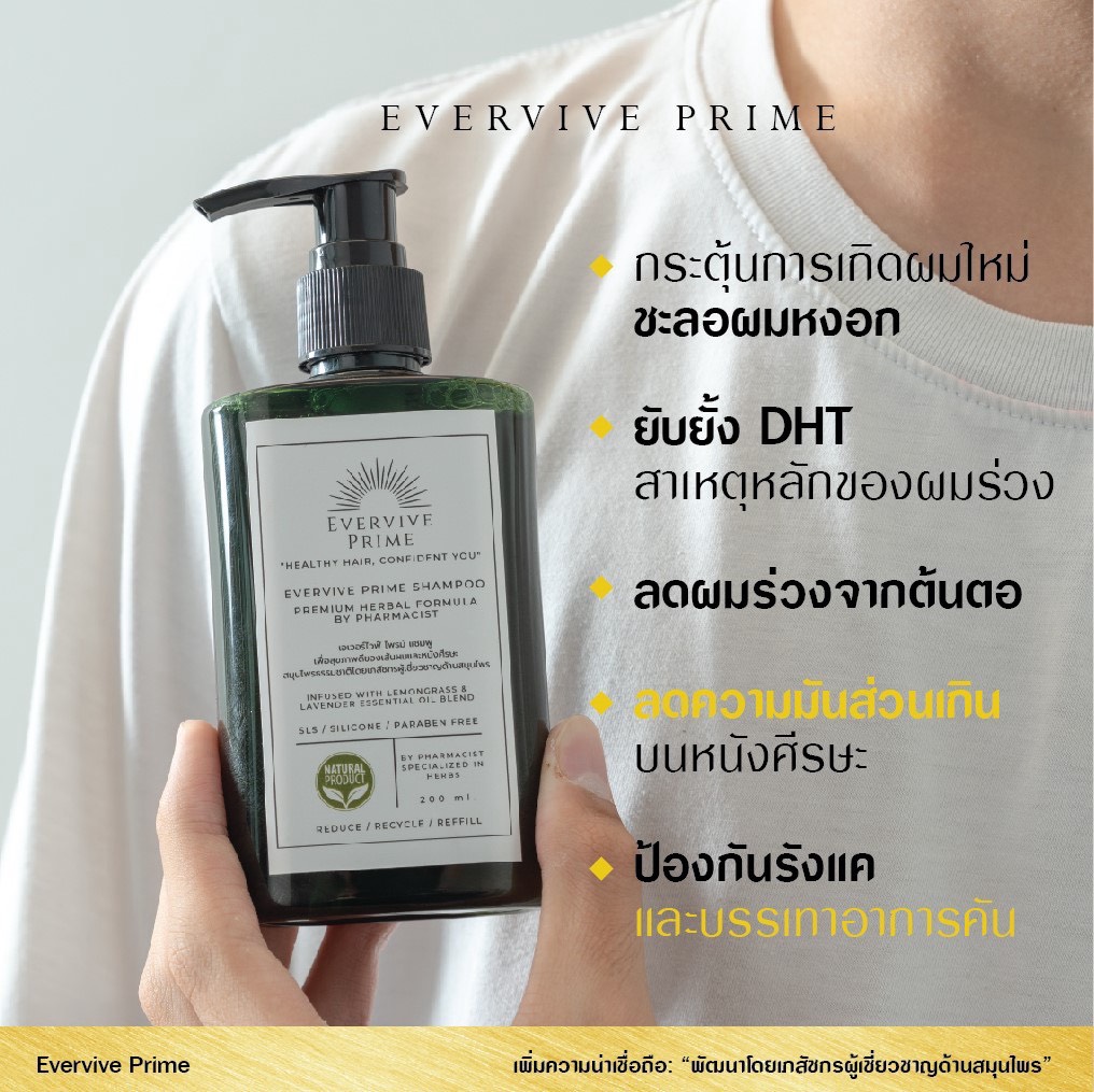 แชมพูสูตรเฉพาะจาก Evervive Prime พัฒนาโดย เภสัชกรผู้เชี่ยวชาญด้านสมุนไพรไทย